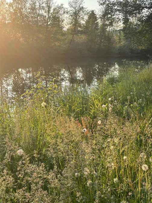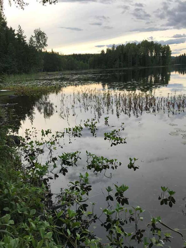 Två kilometer norrut Vassjön med badbrygga, blodiglar och myggsvärmar på kvällen när man satt med sitt metspö och lockade mört. Och simskolan förstås, märkena som erövrades med tuppskinn och lila läppar – varför kom lågtrycken just då?