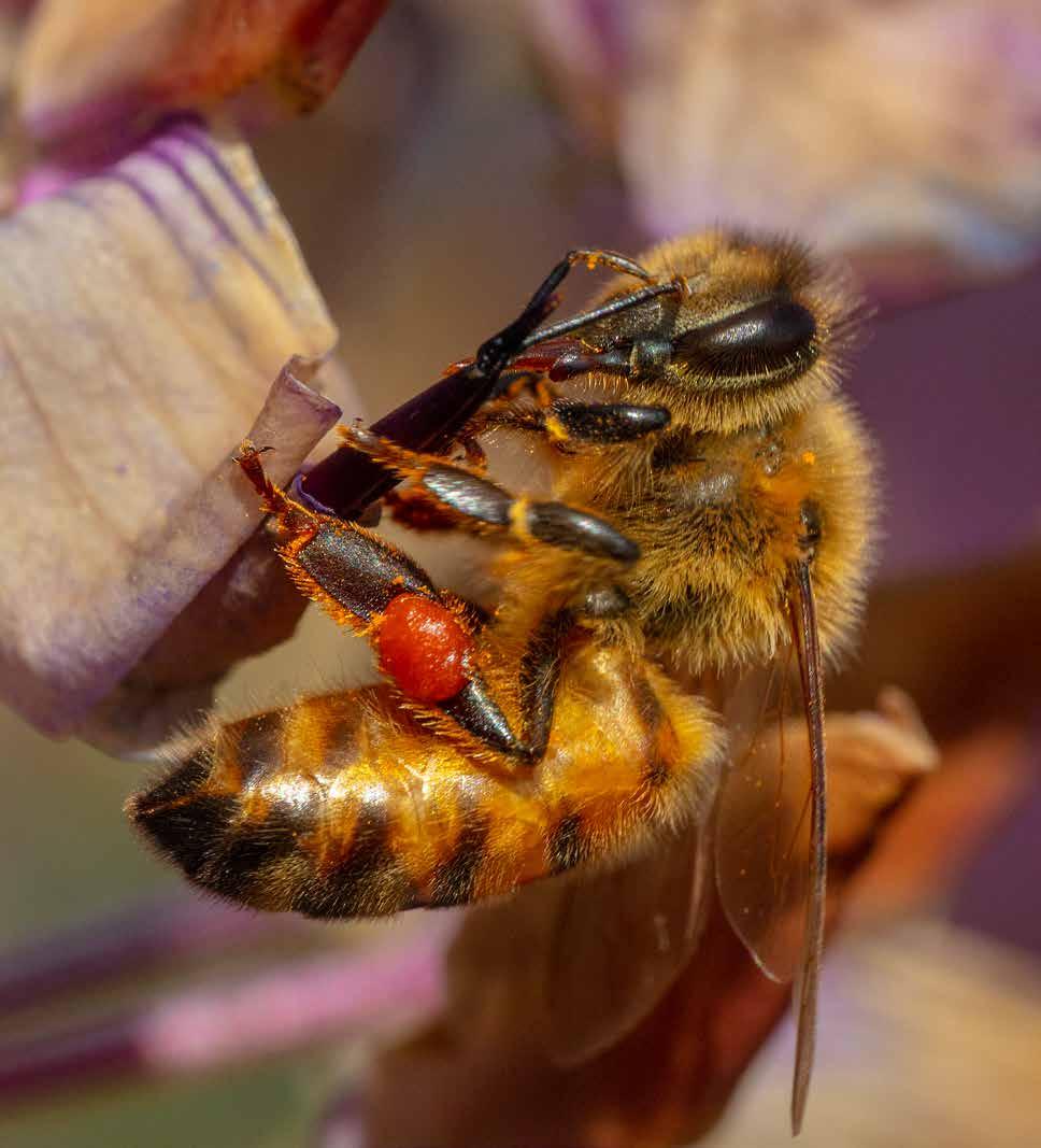 Honungsbi kÀmpar med att fÄ nektar ur en lupin som Àr en invasiv art i svensk natur. Dess tunga Àr inte anpassad efter blommans form och den har svÄrt att nÄ nektarn.