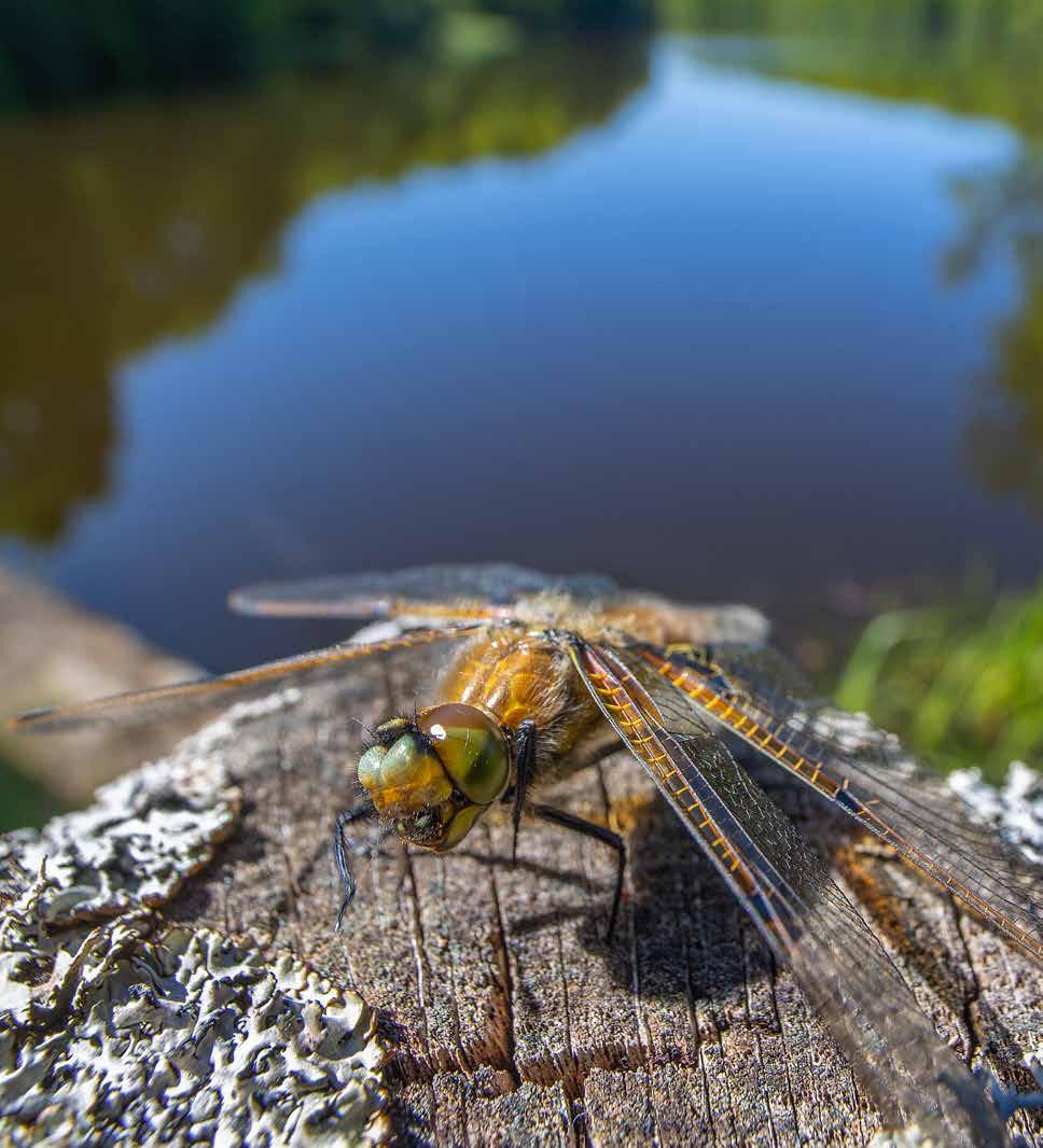 FyrflÀckad trollslÀnda solar i sommarvÀrmen vid Hammarmölledamm. TrollslÀndorna Àr beroende av bra vattenkvalitet för att kunna fortplanta sig eftersom de lever större delen av sitt liv i vattnet.