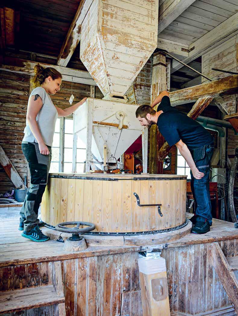 Stöpafors kvarn Ă€r mer Ă€n bara en arbetsplats. Det Ă€r en hundra Ă„r gammal byggnad fylld av liv och hantverksskicklighet. âDet Ă€r en speciell charm hĂ€r inne, som en resa tillbaka i tiden. Att fĂ„ vara i denna vackra byggnad Ă€r det bĂ€sta med jobbetâ, förklarar Emelie.