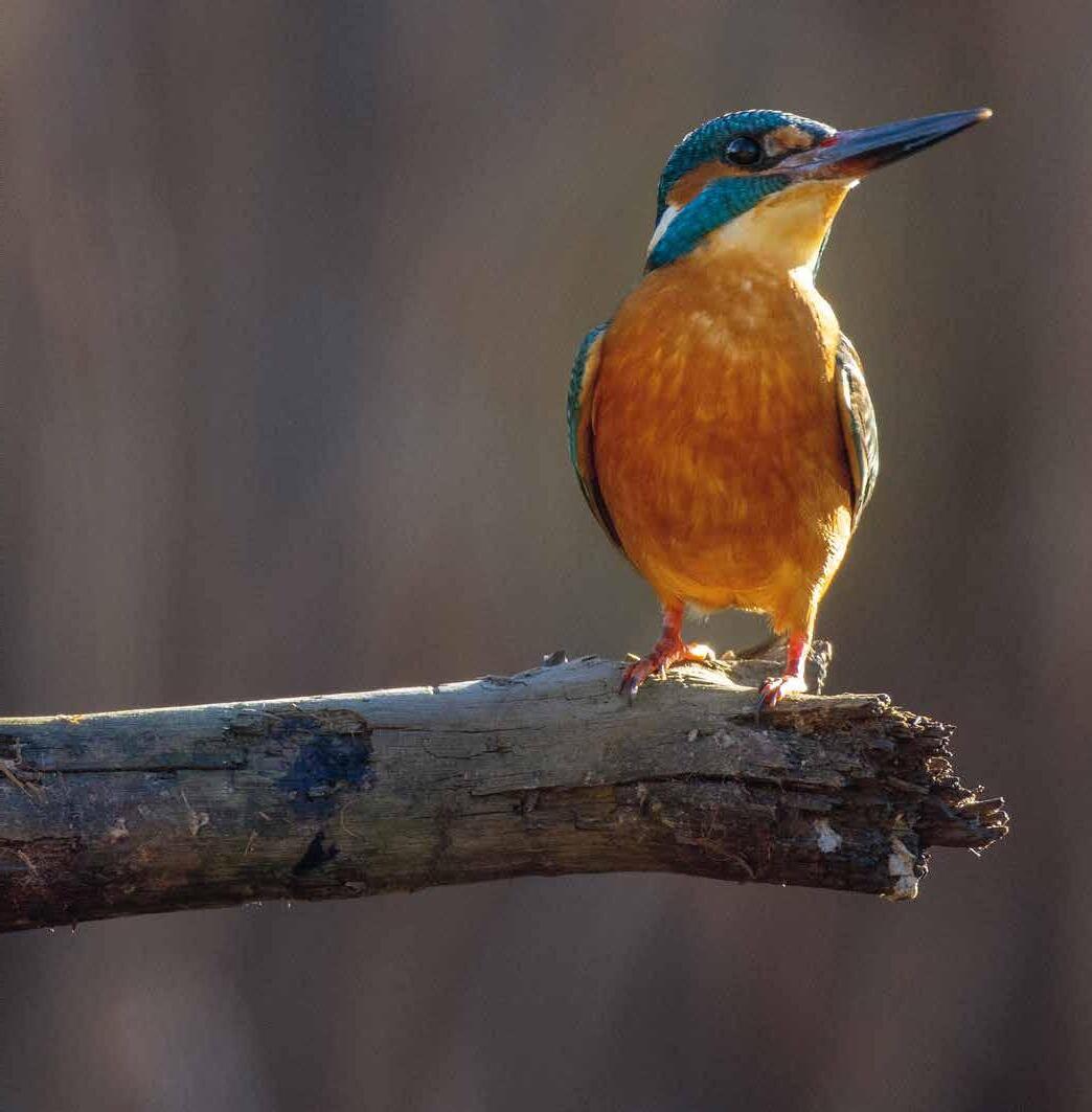 En gråhäger kurar på en fallen trädstam i Stackarpsdammen utanför Klippan en kall vintermorgon.