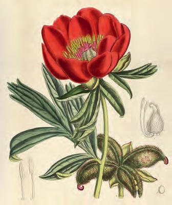 Illustration av Paeonia peregrina av Walter ho od Fitch i Curti's Botanical Magazine 1918.