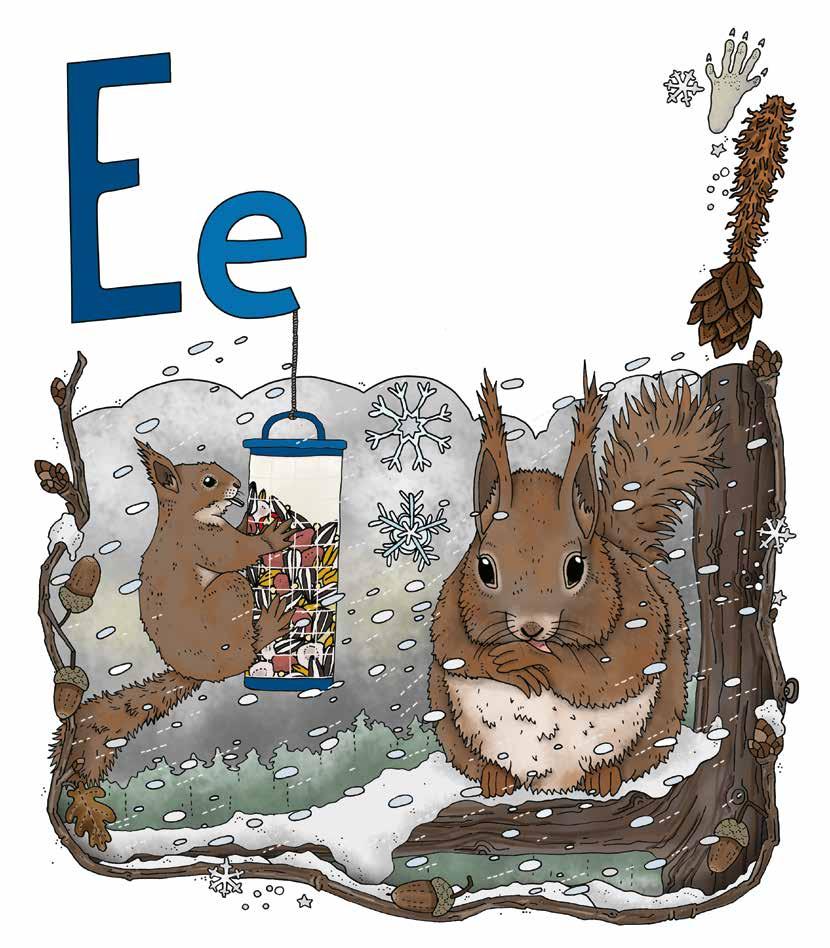 runt om i skogen. Du kan ofta se spår av ekorrar under granar. Där ligger kottar som de skalat i jakt på frön.