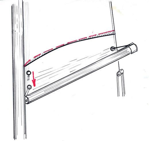 Har ditt försegel en skena, enligt bilden, så kommer seglets form att öka (lättvind) då du fäster skotet i den bakre delen av skenan och minska (hårdvind) då skotet fästes längre fram på skotskenan.