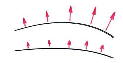 Den luft som passerar på ett segels läsida kommer att behöva gå en längre väg och måste därför öka hastigheten för att ”hinna” möta den luft som passerar på seglets lovartsida. Det är skillnaden i hastighet som gör att trycket på seglets läsida minskar och därmed uppstår ett ”sug” som drar fram seglet.