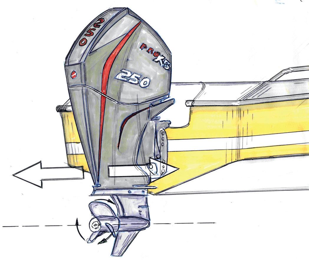 På alla utom- och inombordsmotorer sitter det en liten trimfena i underkanten av motorns kavitationsplatta. Fenan som är gjord av Zink fungerar som en ”offeranod” mot galvaniska strömmar. Förutom det fungerar den som en trimfena för att motverka propellerns dragningskraft. Om propellern snurrar i högervarv (framåt) så skall fenan ställas så att den svänger båten åt höger. Fenans vinkel mot vattnet bör ej överstiga 10 grader.