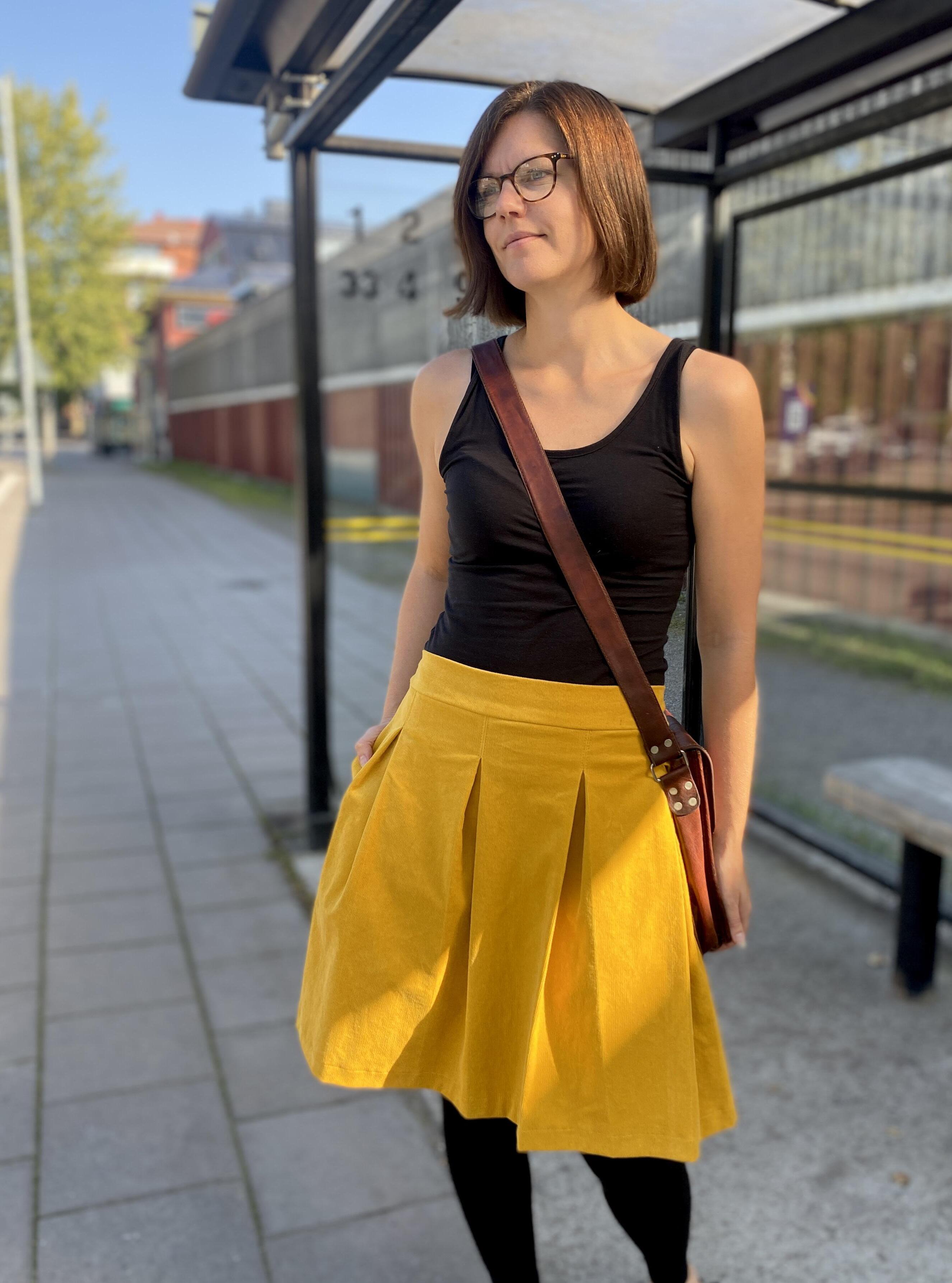 En annan användbar fickvariant är den dolda sidfickan, som sys in plaggets sidsöm. Det är en av de enklaste fickmodellerna och passar bra på både byxor, jackor, kjolar och klänningar. Här visar vi hur den sys på kjolen Ruth, men den kan även enkelt adderas till valfritt annat plagg som saknar fickor.
