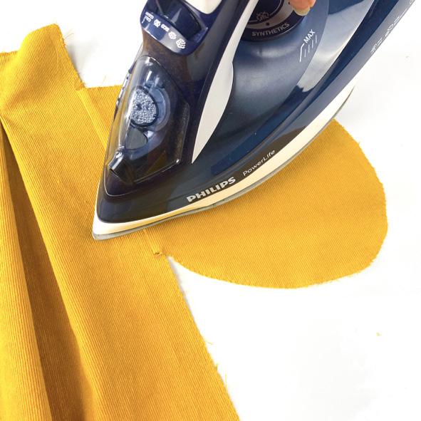 4. Vik ut fickan från kjolen och pressa sömsmånen utåt mot fickan.