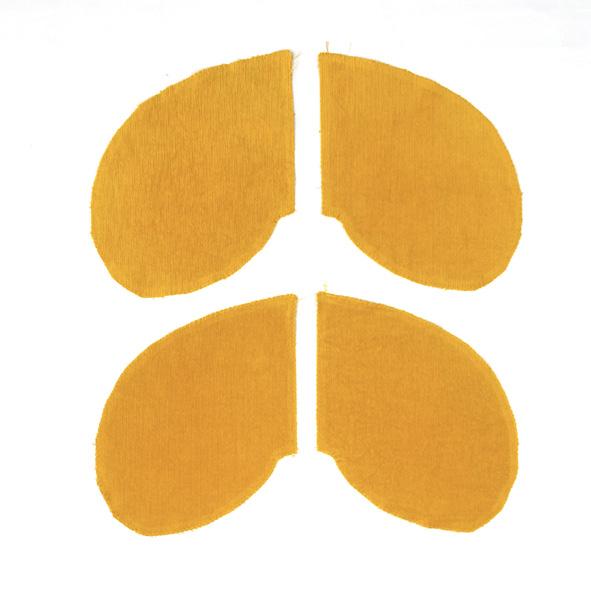 4 Vik mudden aviga mot aviga, så att det bildas en ring . Dela in mudden i fyra lika stora delar och markera med nålar eller clips Var noga med att sömmarna möts och vik gärna sömsmånerna inuti mudden åt olika håll så att tyget ligger plant