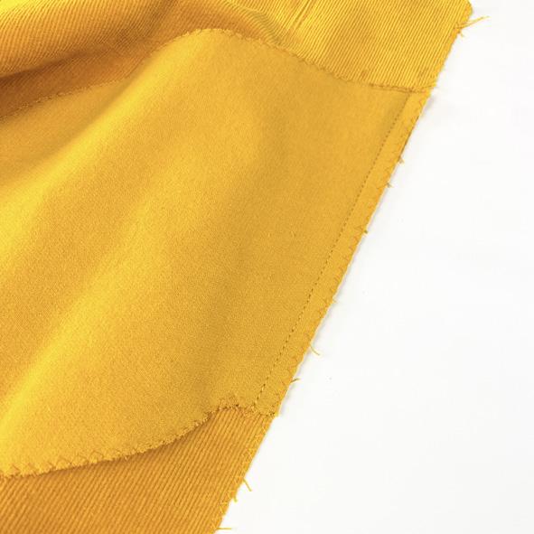 2. Placera en fickdel räta mot räta vid fickmarkeringen längs kjolens kortsida