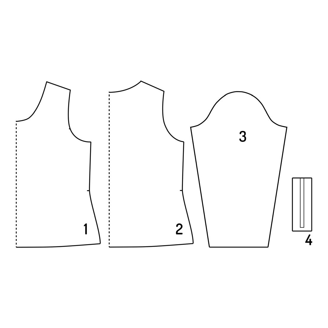 1. För att sy ett par dolda sidfickor, behöver du 4 st fickdelar. Dessa klipps ut spegelvänt