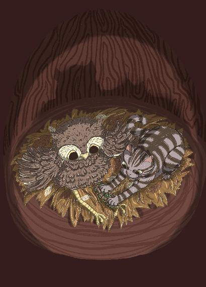 ”Ja, jag försökte fånga dig och äta dig. Men det ska jag inte göra, jag lovar”, säger ugglan.