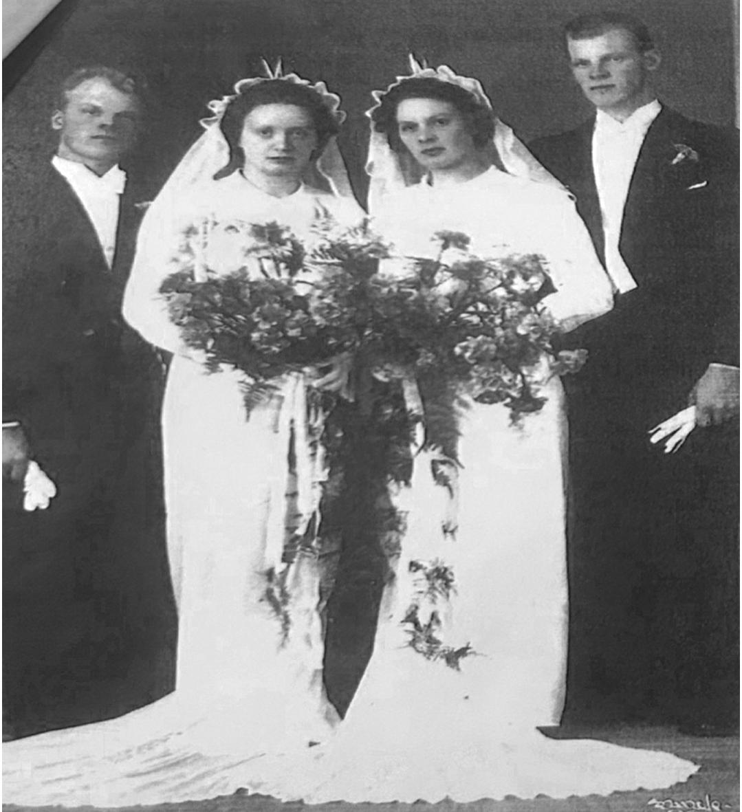 I efterhand har jag fått reda på att när de bägge paren gick in i kyrkan tillsammans spelades bröllopsmarschen ur Mendelssohns, en midsommarnattsdröm, som var skriven av Solveig Andersson. Vigselförrättare var Herbert, brudarnas äldste bror, som var utbildad pastor.