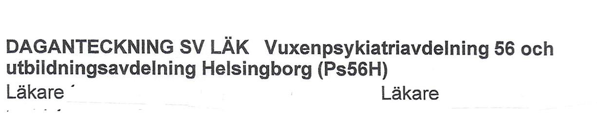 Morgonen därpå kom patienter fram till mig för att prata. Personer som av olika anledningar befann sig på avdelningen. De ville alla veta vilka droger jag var där för, om jag var på avgiftning. Jag hade förvisso en förkärlek för alkohol och tackade inte nej till ett rus. Tidigt hade jag nyfiket provat olika droger men sällan eller aldrig sett det som ett problem. Jag kände mig totalt malplacerad, förstod inte alls vad jag gjorde där och fick inte fram ett enda svar. Med nedböjt huvud undvek jag deras blickar. Mitt första läkarsamtal, första i raden av många. Så okänt för mig. Läkaren välkomnade mig till avdelning femtiofem, en av de avdelningar som alla låg på femte våningen. Den visade sig vara en avdelning för missbruk. Jag hade så många frågor, men det var som om någon hade tryckt ner något i halsen på mig. Jag fick inte fram ett ljud. Till slut lyckades jag ställa frågan om hur länge jag skulle vara där. Han sa att jag skulle bli förflyttad till en annan avdelning, en allmänpsykiatrisk avdelning mer passande för mig. Enligt läkaren skulle jag förmodligen vara där minst en till två veckor. En till två veckor. Det kändes i stunden som att det var en evighet. Vad jag inte visste då var att de två veckorna bara var början på vad som skulle bli en mycket lång vårdtid. En vårdtid som