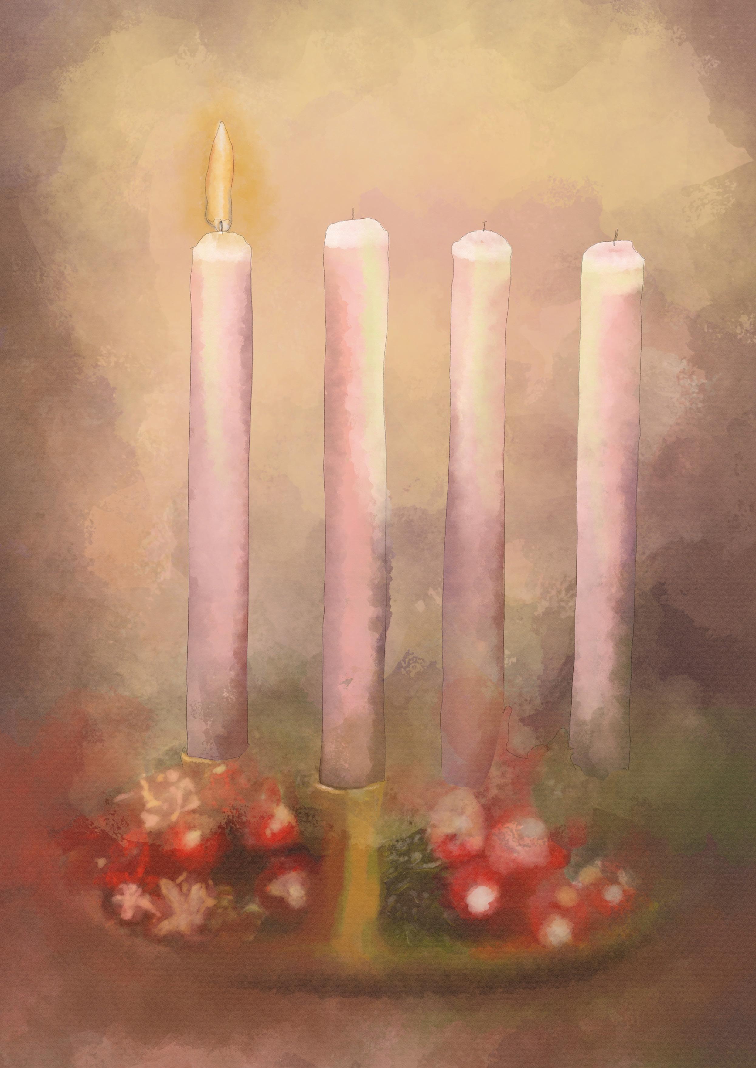 Vi tänder första ljuset och stämningen är här, snart kommer tomten.