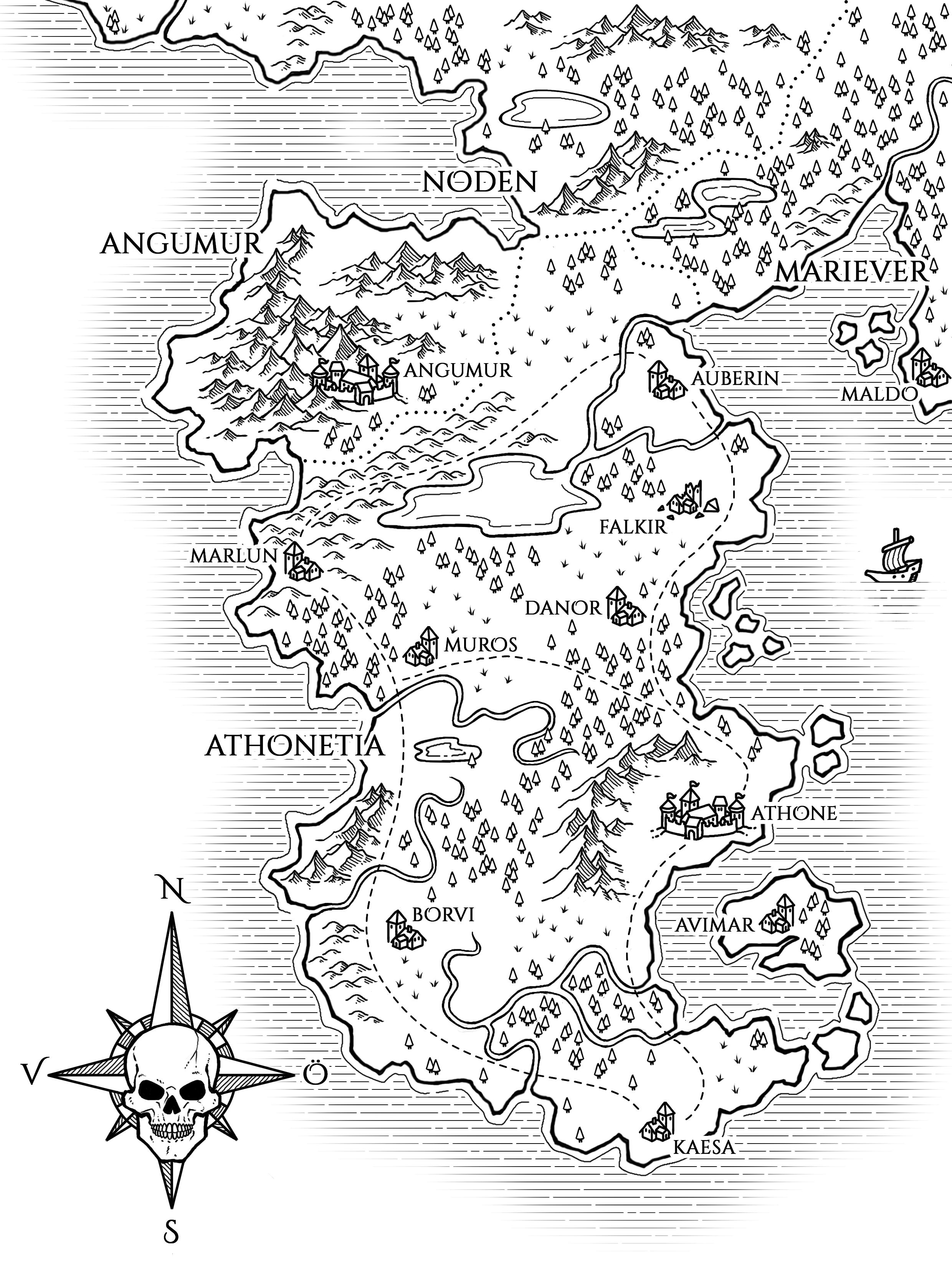 Det fanns inte mycket av värde i deras by. Amaras familj hade lagt undan lite silver men inte mer än för att ta sig genom vintern utan att svälta ihjäl. Amaras far brukade resa till Auberin, den närmaste staden, och handla på marknaden där. Oftast kunde han erbjuda kött från jakten i utbyte mot silver som han kunde köpa mjöl och ägg för. Ibland kom han hem med dockor åt lillasystern. Amara hade vuxit ifrån dem för flera år sedan men kunde trots det få en docka ibland som ett skämt.