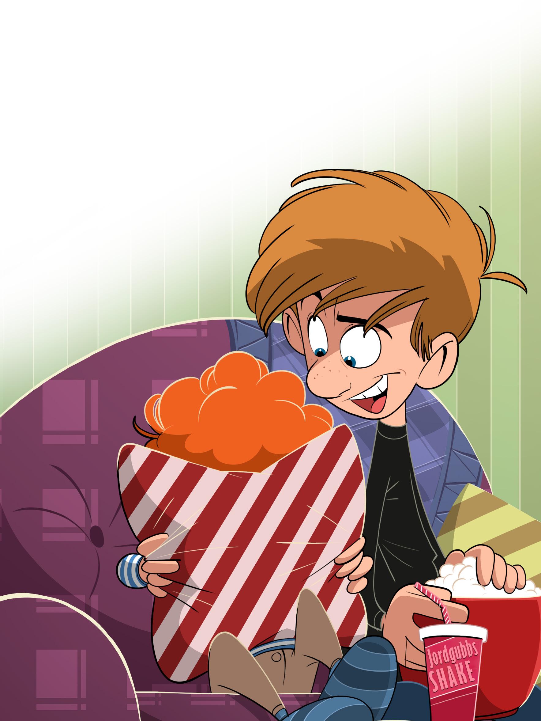 Sam tittar också på filmen. Det får han inte för mamma och pappa.