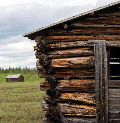 I byn Juoksengi ror en man ut till de stugor hans förÀldrar en gÄng lÀt bygga vid Àlvens strand. Hans armar och hÀnder pressar Ärorna bakÄt. Hans familjestugor ser ut att svÀva pÄ vattnet.