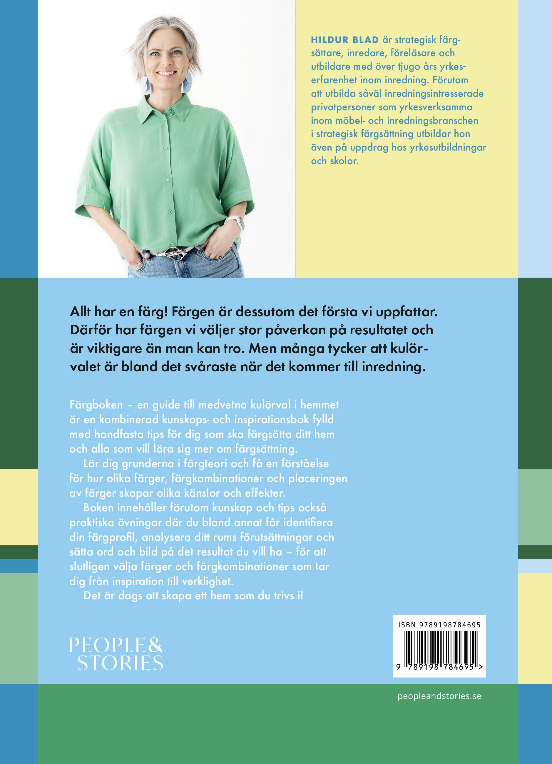Det hĂ€r Ă€r en bok jag önskar hade funnits nĂ€r jag började testa mig fram med fĂ€rger och fĂ€rgkombinationer i inredningen. Jag hade en kĂ€nsla, men kunde inte sĂ€tta ord pĂ„ den. Om nĂ„gon frĂ„gade mig varför jag föreslog en viss fĂ€rg hade jag svĂ„rt att förklara varför. Det kĂ€ndes bara rĂ€tt. Men det var inte ett argument jag ville anvĂ€nda mig av nĂ€r kunder ville ha min hjĂ€lp med kulörvalet. DĂ€rför har jag genom Ă„ren lagt mycket tid och energi pĂ„ att fördjupa mig inom fĂ€rgsĂ€ttning, bĂ„de genom praktiskt arbete men ocksĂ„ genom utbildning och egna studier. Jag har utformat mina egna arbetsprocesser och identiïŹerat strategier som gĂ„r att upprepa för att kunna sĂ€kerstĂ€lla ett visst resultat gĂ„ng efter gĂ„ng.