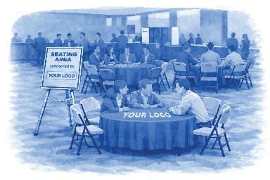 Brand ownership of designated seating areas where attendees rest, meet, and network throughout the show.