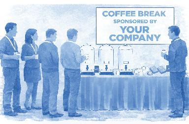 A high-traffic branding opportunity during a scheduled networking break when attendees gather for freshly brewed coffee.