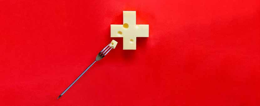 Schweizer:innen verbringen viel Zeit in den Bergen. Da die Alpen zwei Drittel des Landes einneh men, finden sich dort die meisten Kühe wieder. Eine Wanderung, ohne Kuhherden zu sehen oder hören, ist also kaum vorstellbar. Zudem wird die Milch der Kühe zur Herstellung für die zwei wichtigsten Produkte der Schweiz benötigt: Chääs und Schoggi.