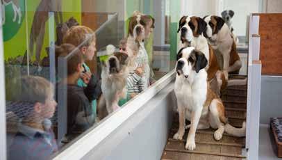 Die Besucher:innen erhalten im Barryland Gelegenheit, die be rühmten Bernhardiner live zu be wundern und den Tierpflegerinnen bei ih ren täglichen Arbeiten über die Schultern zu schauen. Die Bernhardiner von Nahem beim Spielen, Schlafen, Trainieren und