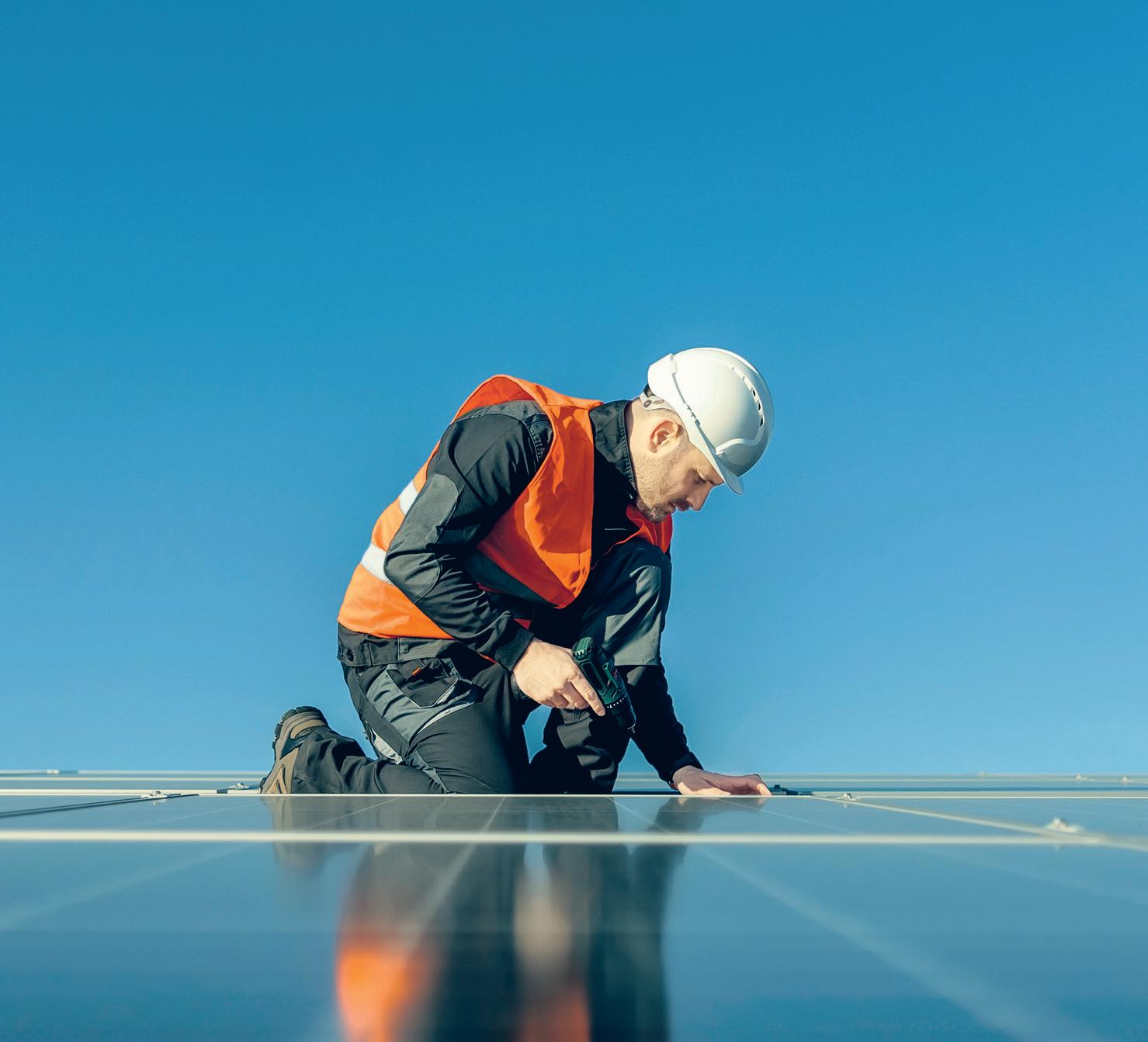 Energie: von der Sonne auf die Baustelle Um den Energiebedarf für die neuen Fahrzeuge und Maschinen zu decken, setzt die Kibag wo möglich auf Eigenproduktion: Auf den Dächern ihrer Standorte stehen riesige Solaranlagen, wie in Regensdorf, wo die Anlage mit über 2700