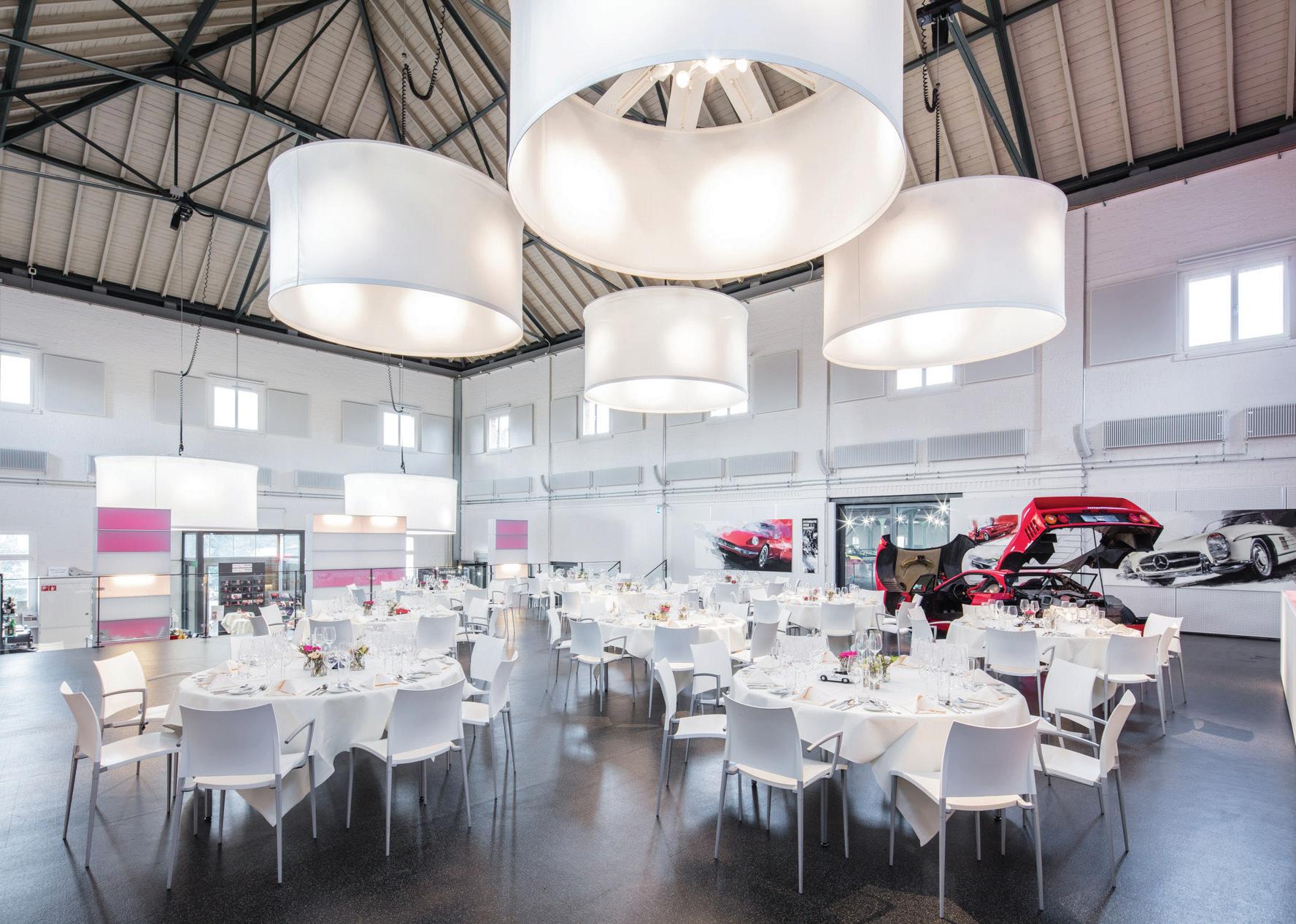 Die denkmalgeschützten Eventräume eignen sich insbesondere für Anlässe aller Art. Auf einem geführten Rundgang werden viele Mythen und Geschichten über die ausgestellten 120 exklusiven, hochkarätigen Fahrzeuge erzählt. Einen