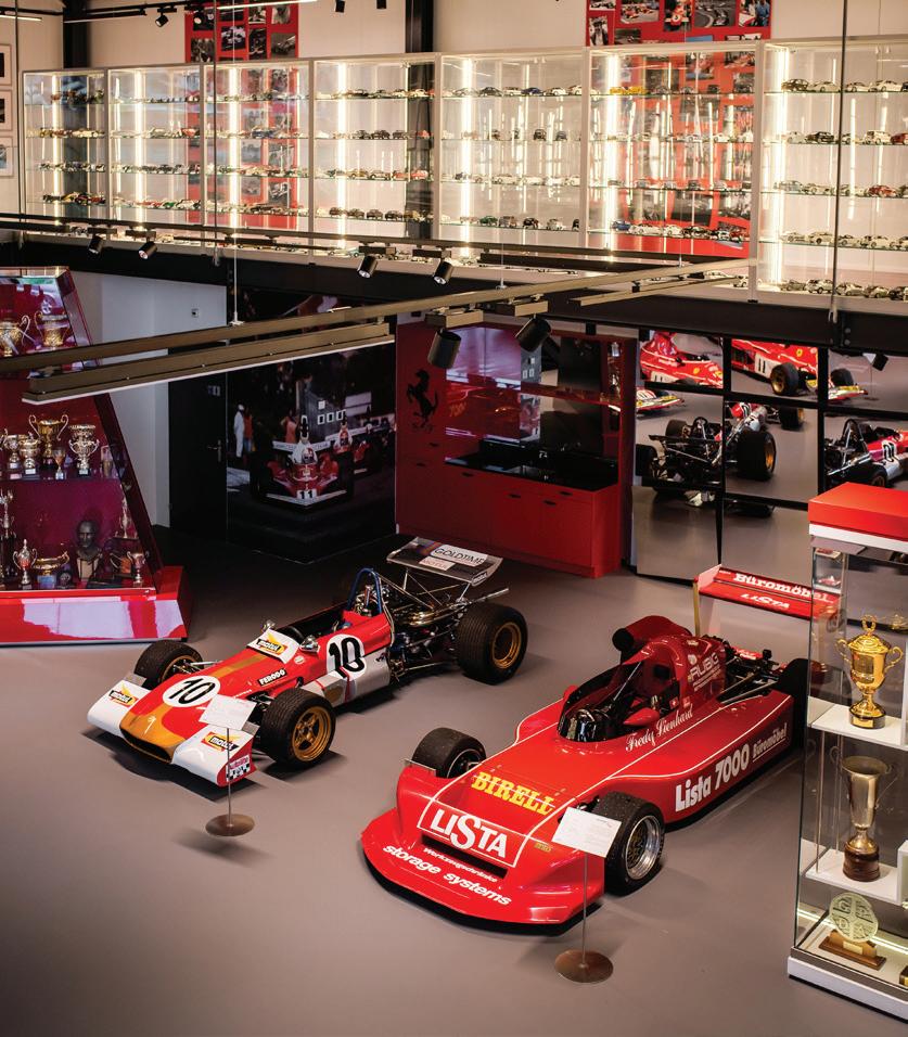 Mit Sicht auf den hauseigenen «autobau»-Rundkurs ist Feiern in einzigartiger Umgebung auch auf der sonnigen Terrasse im Freien möglich. Der Rundkurs ist versehen mit Leitplanken und rot-weiss-roten Curps. Weil es in der Schweiz keine permanente Rennstrecke gibt, vermittelt der Rundkurs ein südländisches Flair. «La dolce far niente» lässt sich ganz entspannt bei einem feinen Drink auf der Terrasse geniessen. Urlaubsgefühle kommen auf. Auf dem Rundkurs werden die beliebten Renntaxifahrten mit Rennwagen durchgeführt. Die Gäste erleben dabei die extreme Beschleunigung von 0 auf 100 km/h und die darauffolgende Entschleunigung vor den Kurven. Die Renntaxifahrten sind ein Highlight für jeden Anlass. Die Fahrzeugsammlung Bis auf wenige Ausnahmen von Leihgaben stammen alle Sportwagen, Klassiker und Rennautos aus der privaten Sammlung Fredy Lienhards. Die Bandbreite der Autos weltbekannter Autohersteller reicht von Alfa Romeo, Aston Martin, Bugatti, BMW, über Ferrari, Ford, Jaguar, Koenigsegg, Lamborghini und Lancia, bis hin zu Maserati, Mercedes und Porsche. Sie zeigt auch viele exotische Supersportler aus den 1990er Jahren wie Saleen S7 und Vector W8, die man sonst bestenfalls in Büchern oder im Internet zu sehen bekommt. Das Gleiche gilt für die unglaubliche Vielfalt professioneller Rennwagen aus den spektakulärsten und schnellsten Rennserien der Welt – von der Rallye und dem Dragster-Racing, den Le-Mans-Prototypenklassen oder der US-amerikanischen Indycar-Serie sowie 13 Sauber Formel-1-Boliden ist alles dabei. Im Clay Regazzoni Honor Room wird das Vermächtnis des erfolgreichsten Formel-1-Fahrers der Schweiz ausgestellt. In einer Dauerausstellung werden die Rennwagen, Pokale und viele persönliche Erinnerungsstücke der charismatischen Persönlichkeit Clay Regazzoni präsentiert.