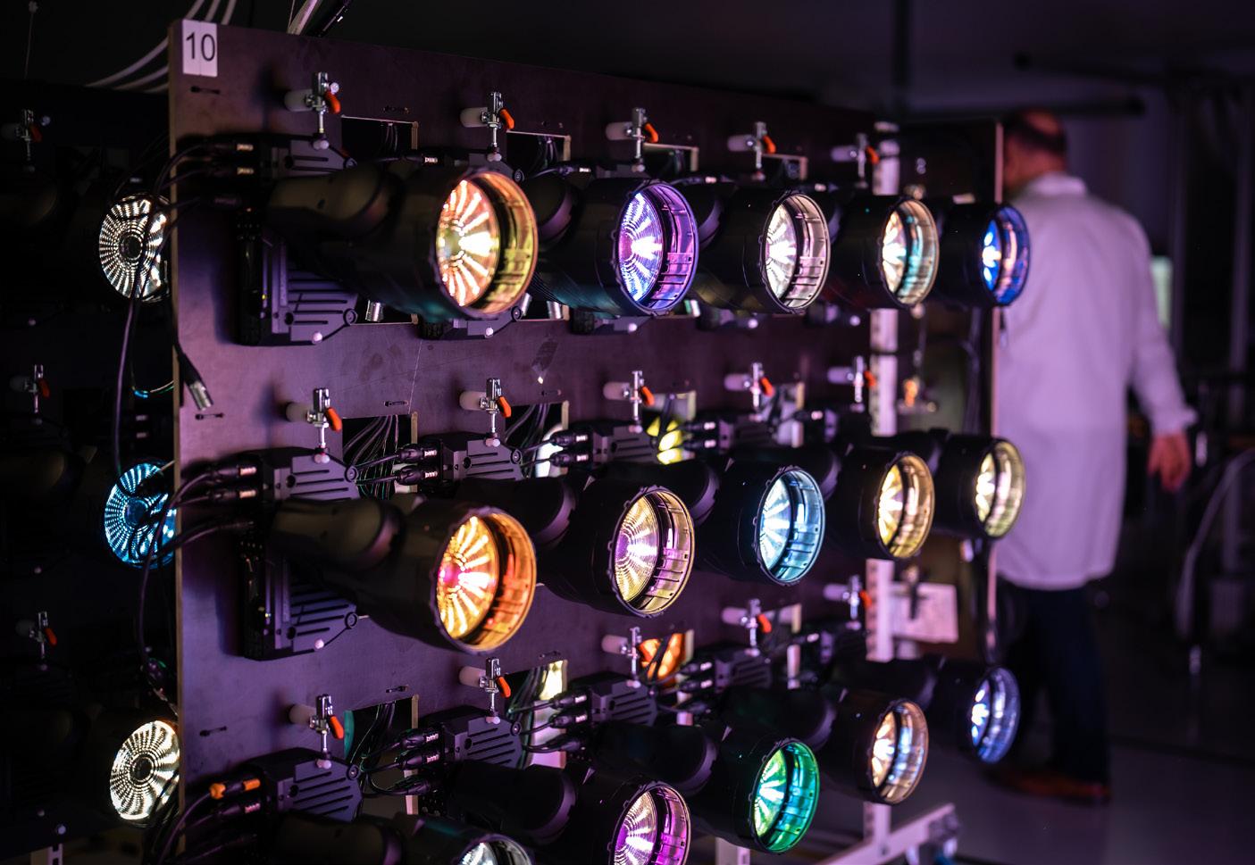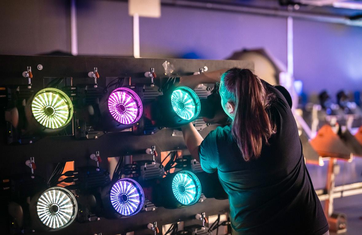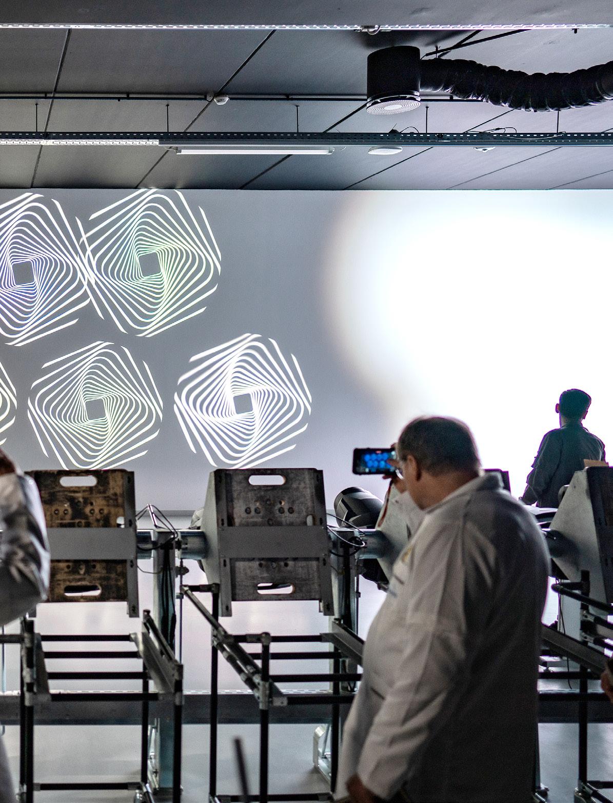 Among the last stages visited, the laboratory for the final check of performance to evaluate, both through instruments and measurement, and through empirical observation by specialized personnel, the uniformity of light emission, the precision of effects and colors, graphics, up to the evaluation of the mechanical arm, subjected to a rigorous "stress test".