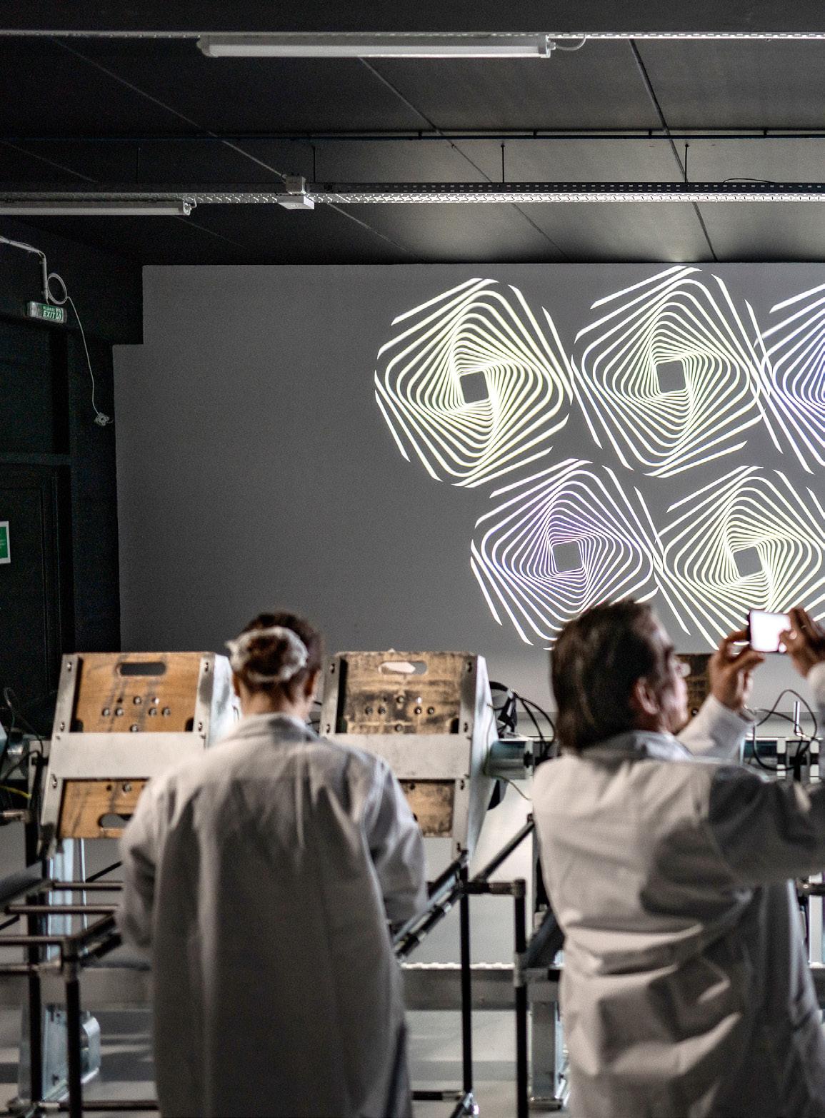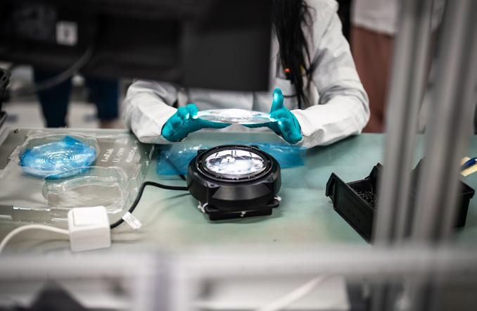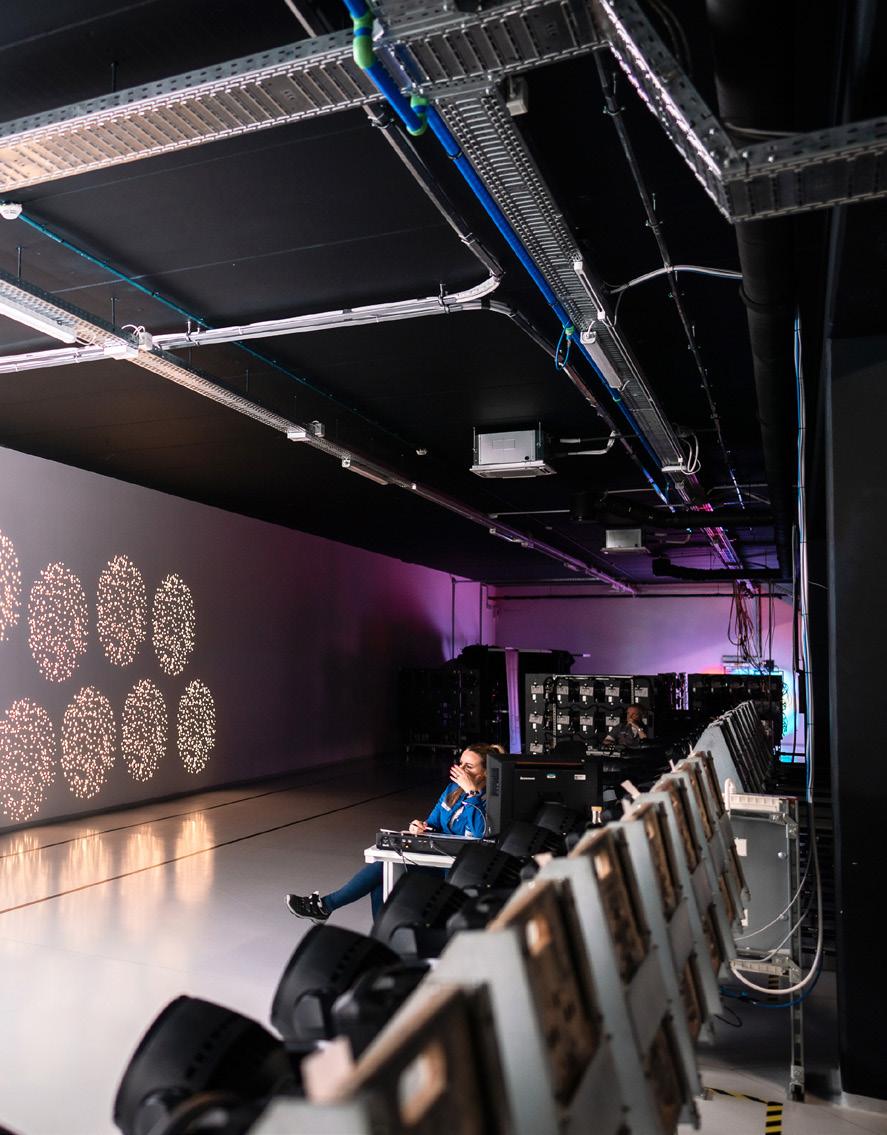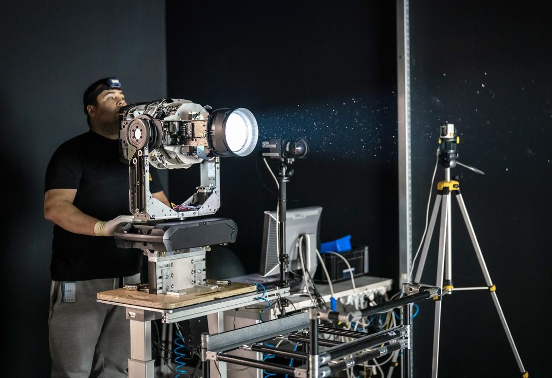 Among the last stages visited, the laboratory for the final check of performance to evaluate, both through instruments and measurement, and through empirical observation by specialized personnel, the uniformity of light emission, the precision of effects and colors, graphics, up to the evaluation of the mechanical arm, subjected to a rigorous "stress test".