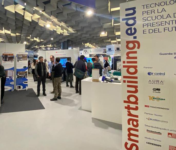 Education is one of the most important fields of application of integrated technologies, and scholastic buildings in particular may benefit from interventions aimed at energy saving, intelligent resource management and automation, with advantages for the entire community. Located on the ground floor of the Spadolini Pavilion, the Smartbuilding. edu area, designed by Smart Building Italia and Connessioni and fully renovated with respect to the 2023 event, was a point of reference for teachers, the heads and managers of schools and technicians. In particular it pursued the objective of illustrating how new technologies can be integrated into schools to improve their energy efficiency, air quality, safety and inclusiveness. These topics were the subjects of interest of the companies present in the area, each of which is the ‘owner’ of an exclusive product: Air Control, Audiosales, Aura Immersive, Touch Window, Big Rock, H-Farm and the technical sponsors, Benq and Euromet. For the visitors present at this event the SB.Edu expo thus presented a gallery of best practices and examples of the best technological solutions for Italian schools. In fact, with the National Recovery and Resilience Plan (NRRP) Italy plans to invest 1.19 billion euro in the construction of 216 new school buildings and 4.9 billion euro for the refurbishment of existing structures. These funds are crucial for modernising schools, improving their sustainability and functionality, provided that they respond to the real needs of the scholastic system. A training room was also placed at the centre of the exhibition area where industry experts and representatives of partner companies held short seminars on various subjects. These sessions highlighted school-related technologies and were in line with the topics introduced in the area thanks to the participation of the exhibi-