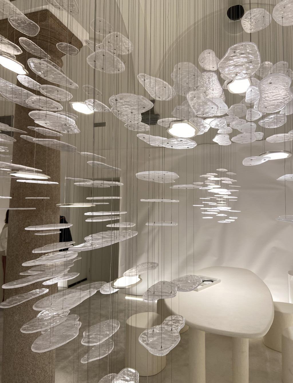 is by far the most fascinating installation and has the merit of focussing the visitor's attention on the use of molten glass, redefining the relationship between glass and architecture with Lasvit's interesting creative works. However, also worthy of note are the stimulating ‘Shapes of Lights' and 'The Light You Are' exhibitions - both of which are presented by Masiero - in the heart of the Brera district and, above all, the 'Bruma' exhibition, in the central Via San Maurilio, at which Giopato presented a new collection of lights made with artisan-crafted glass. The light products are characterised by carefully-crafted glass, having effects - in this case - truly capable of drawing technology and the natural dimension closer together or, at least, of integrating technological capacity and human skills. The presentation of works produced by the firm Masiero, however, occurred at two separate installations, at hubs located quite close to each other in the Brera District. The exhibitions were conceived as a means to present the firm's new collections, specifically created by the MILO studio for the Fuorisalone 2024 event. 'The Light You Are' exhibition underlines Masiero's capacity to propose in its catalogue a wide range of lighting solutions, offering a variety of designs, materials and special characteristics. The products are designed with an intentionally ‘transversal’ style. The show also reflects the company's ability to produce tailor-made, customised lighting solutions. 'The Shapes of Lights' exhibition proposed light, ‘rhythmic’ geometrical elements, and presented