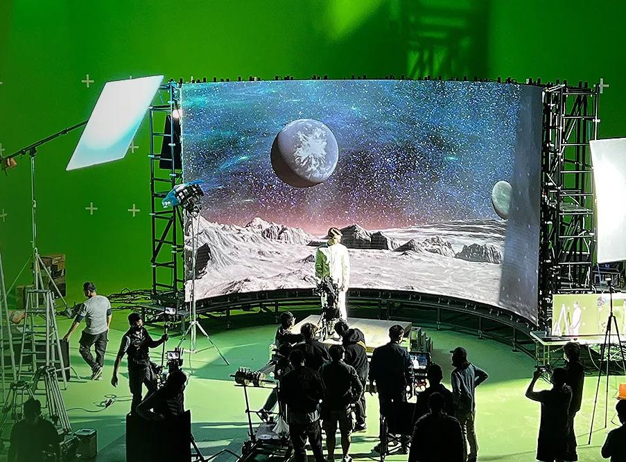 With the evolution of technology, actors nowadays perform against an LED wall –replacing the famous green screen – that displays the virtual environment, which