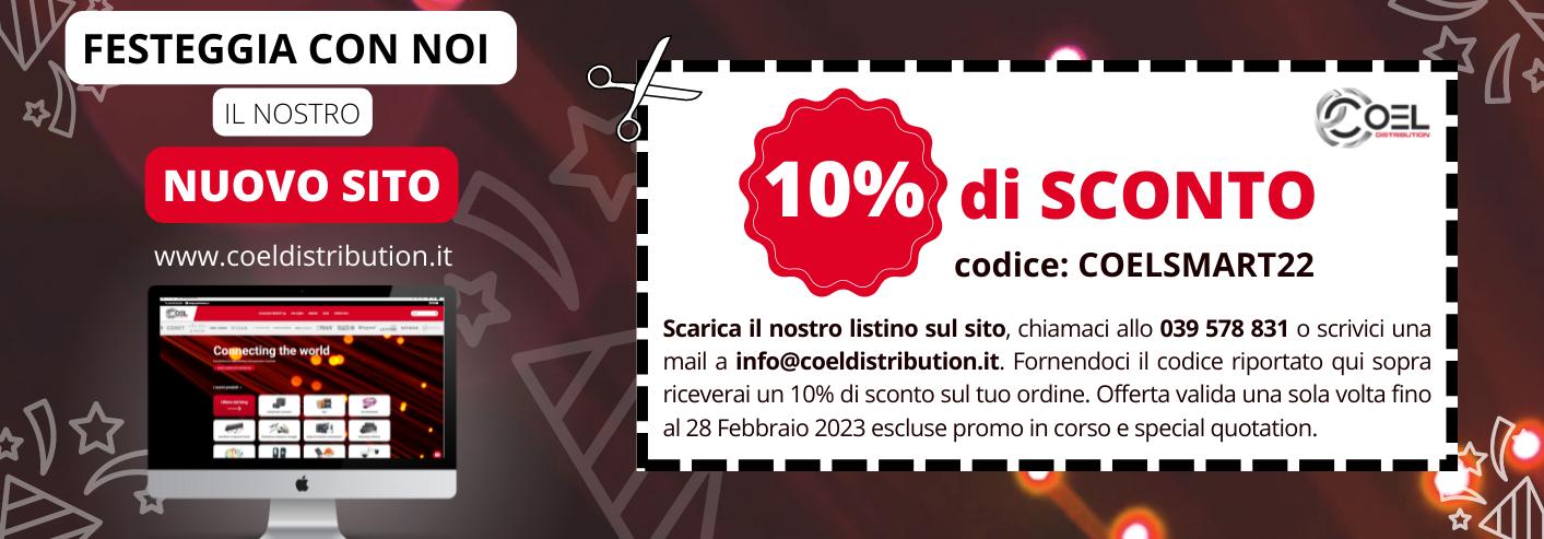 Per festeggiare insieme il lancio del nostro nuovo sito internet www.coeldistribution.it, ti diamo il 10% di sconto sul prossimo ordine (offerta valida per una volta fino al 28 Febbraio 2023 escluse altre promo in corso e special quotation)