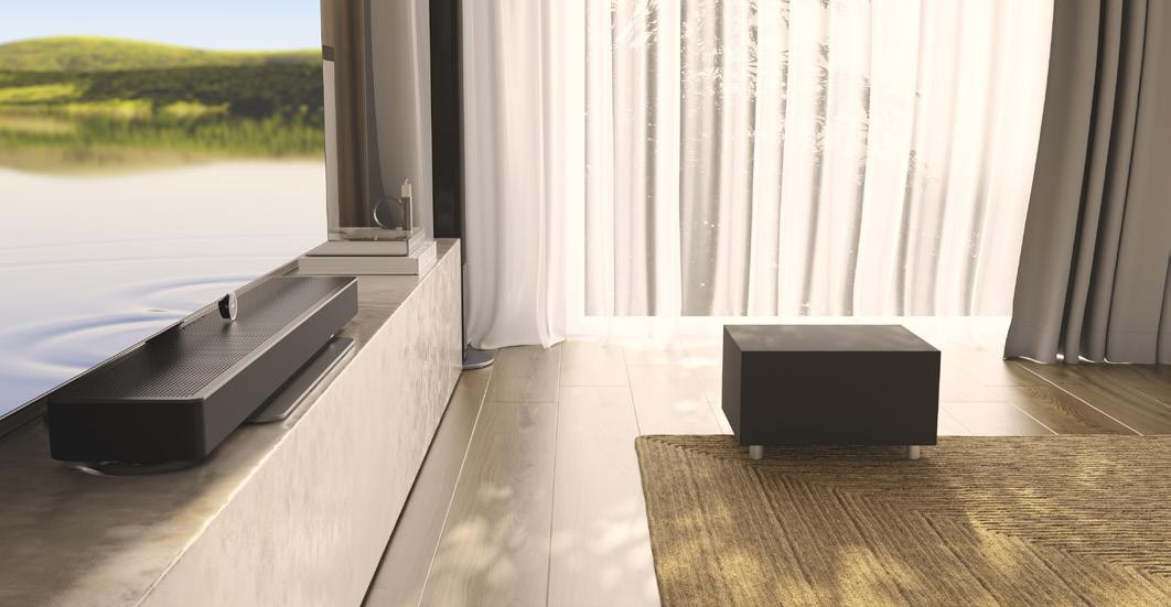 For those who enjoy immersive, threedimensional audio, the Loewe klang bar3 mr is equipped with Dolby Atmos and DTS:X support, creating an impressive, object-based soundstage. Whether you’re watching the latest blockbuster or enjoying your favorite music, the sound seems to come from all around you, with an exceptional sense of depth and space. The combination of upfiring subwoofers and forward-facing speakers creates a surround sound experience without the need for a large subwoofer, ideal for those who want to maintain a clean, minimalist setup.