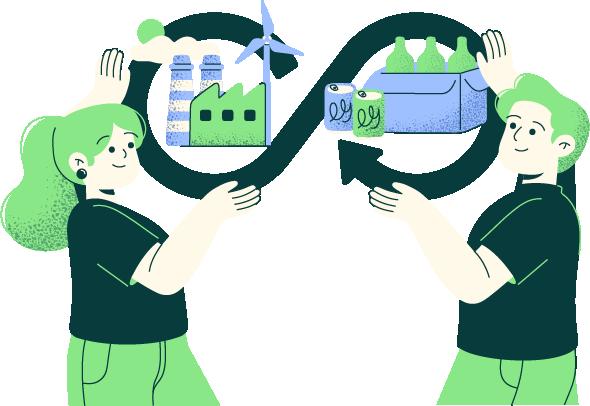 El sistema de economía circular comenzó con la industria y los clústeres, impulsando "cadenas de economía circular" donde una empresa ancla invita a proveedores, clientes o asociados a proponer iniciativas.