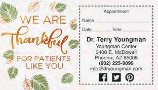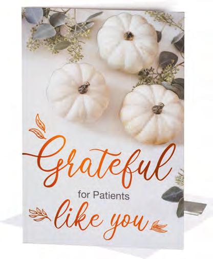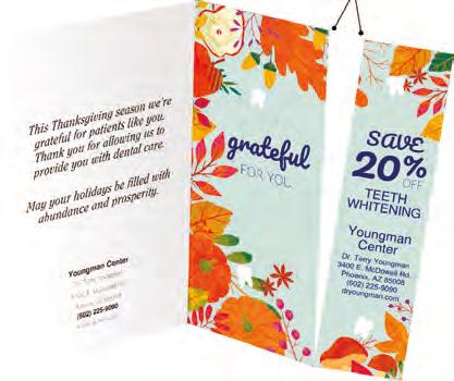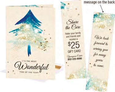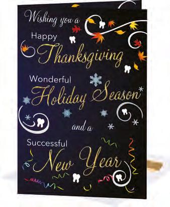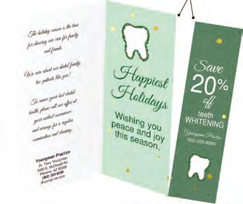 Gate Fold Cards offer a unique and dazzling presentation inside and out! Include a special message, your full color logo and signatures on the inside. See smartpractice.com/seasonal for pricing.