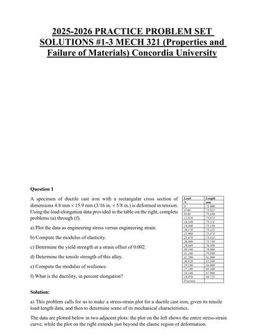 2025-2026 PRACTICE PROBLEM SET SOLUTIONS #1-3 MECH 321 (Properties and Failure of Materials) Concordia University
