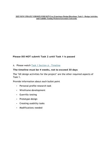 2025 NEW UPDATE VERSION FOR D479 User Experience Design Directions: Task 1 - Design Activities and Usability Testing Western Governors University
