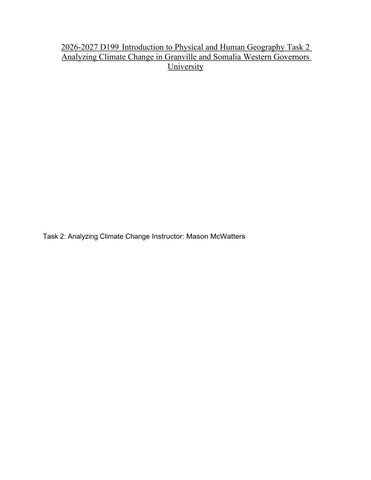 2026-2027 D199 Introduction to Physical and Human Geography Task 2 Analyzing Climate Change in Granville and Somalia Western Governors University