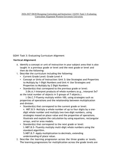2026-2027 D630 Designing Curriculum and Instruction 1 GGN1 Task 3: Evaluating Curriculum Alignment Western Governors University