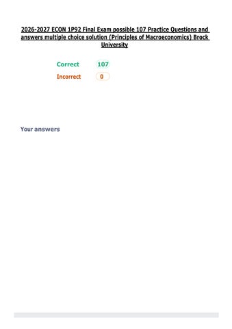 2026-2027 ECON 1P92 Final Exam possible 107 Practice Questions and answers multiple choice solution (Principles of Macroeconomics) Brock University Correct Incorrect