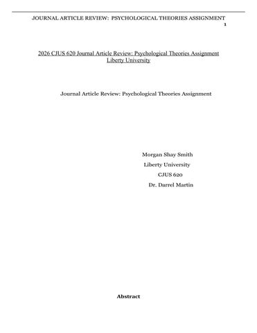 2026 CJUS 620 Journal Article Review: Psychological Theories Assignment Liberty University