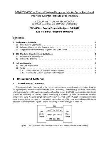 2026 ECE 4550 — Control System Design — Lab #4- Serial Peripheral Interface Georgia institute of technology GEORGIA INSTITUTE OF TECHNOLOGY