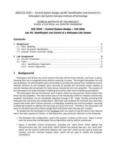 2026 ECE 4550 — Control System Design Lab #9- Identification and Control of a Helicopter-Like System Georgia institute of technology GEORGIA INSTITUTE OF TECHNOLOGY