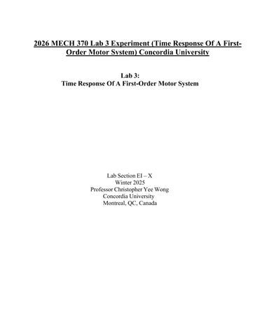 2026 MECH 370 Lab 3 Experiment (Time Response Of A FirstOrder Motor System) Concordia University Lab 3: Time Response Of A First-Order Motor System