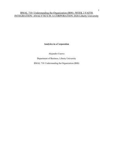 BMAL 710: Understanding the Organization (B08) -WEEK 2 FAITH INTEGRATION: ANALYTICS IN A CORPORATION 2026 Liberty University