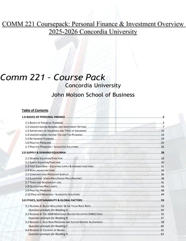 COMM 221 Coursepack: Personal Finance & Investment Overview 2025-2026 Concordia University